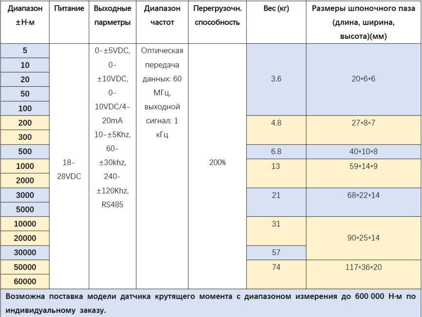 Тензорезисторы фиксируют деформацию от крутящего момента и превращают её в электрический сигнал. Встроенная микросхема сразу его усиливает и обрабатывает, что повышает точность и устойчивость к помехам. Датчик использует беспроводное питание и передачу данных, что полностью исключает износ от трения, как в старых щёточных моделях. Вращающаяся и неподвижная части не имеют физического контакта. Один датчик подходит для контроля момента во вращающихся механизмах (динамический режим) и для калибровки или проверки в покое (статический режим). Высокая точность и надёжность: Компактная конструкция и цифровая обработка обеспечивают стабильные показания даже при высоких скоростях.